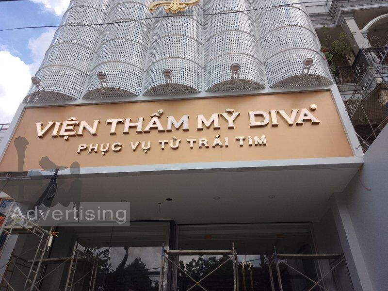 Được sự tín nhiệm của quý khách công ty Tài quảng cáo thường xuyên lắp đặt các bảng hiệu nền alu chữ inox . Như tập đoàn làm đẹp Diva, Luxury, Thẩm mỹ Quốc tế ASIA, Ngọc Hường…